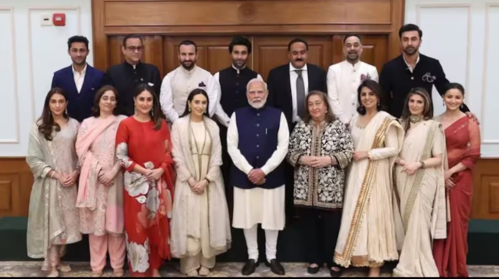 नई दिल्ली। प्रसिद्ध फिल्म कलाकार स्व.राज कपूर की 14 दिसंबर को बर्थ एनिवर्सरी है। इस मौके पर आरके फिल्म फेस्टिवल का आयोजन किया गया है। इस कार्यक्रम में पीएम नरेंद्र मोदी को आमंत्रित करने कपूर परिवार गया था। इसमें करीना कपूर, सैफ अली खान, नीतू कपूर, रणबीर कपूर, आलिया भट्ट, रिद्धिमा कपूर, अदार जैन, अरमान जैन, नीतू सिंह और रीमा जैन आदि शामिल थे।