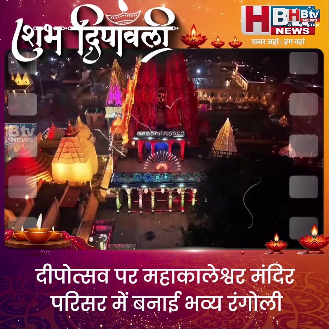 उज्जैन…दीपोत्सव पर महाकालेश्वर मंदिर परिसर में बनाई भव्य रंगोली