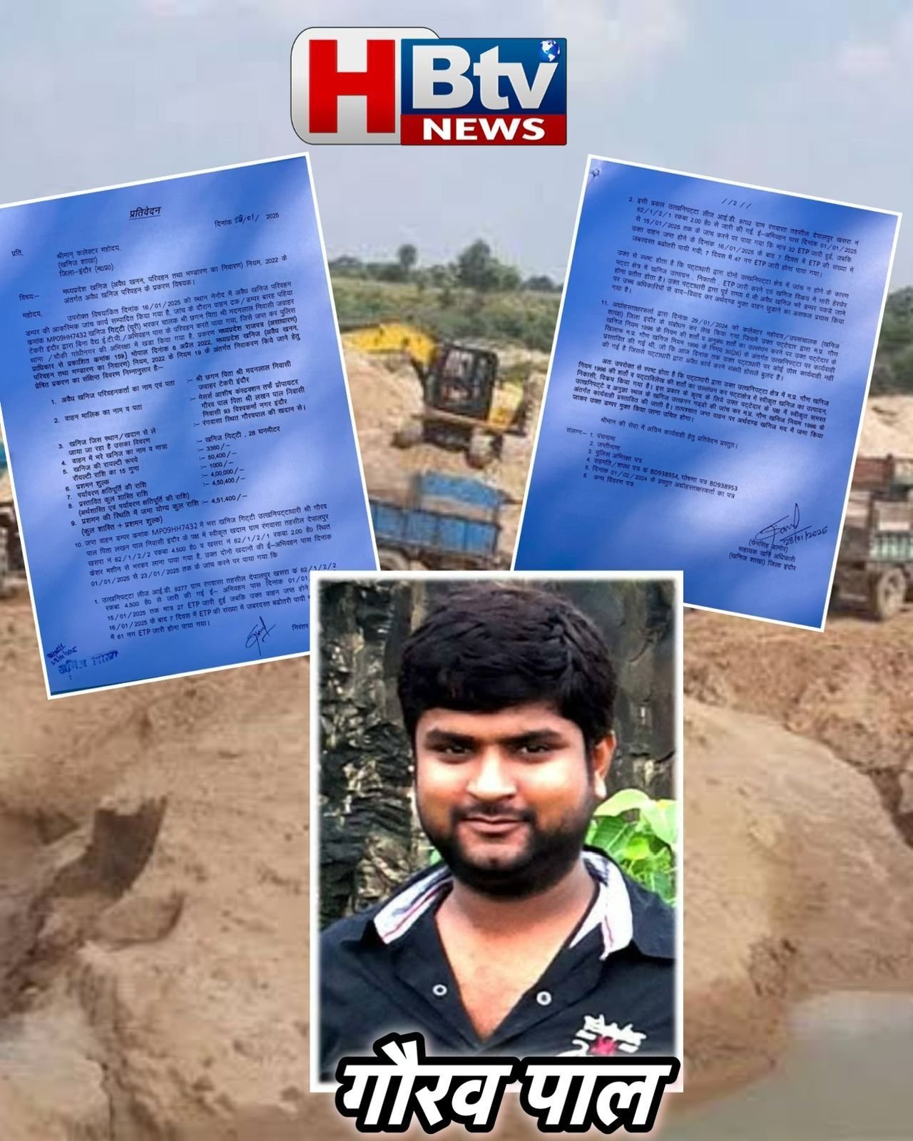 प्रतिवेदन में कहा गया है कि इस वाहन का मालिक मेसर्स आशीष कंस्ट्रक्शन तर्फे प्रोपायटर गौरव पाल पिता लखन पाल निवासी निवासी 93 विश्वकर्मा नगर इंदौर है। यह खनिज ग्राम रंगवासा, तहसील देपालपुर, खसरा नंबर 62/1/2/2 रकबा 4.500 व खसरा नंबर 62/1/2/1 रकबा 2 हेक्टेयर स्थित गौरव पाल की क्रेशर मशीन से भरकर लाया गया है।