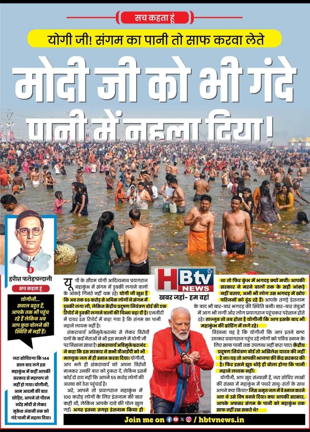 जरा सोचिएगा कि 144 साल बाद लगे इस महाकुंभ में कहीं आपकी सरकार से महापाप तो नहीं हो गया। योगीजी, आम आदमी की बात छोड़िए, आपने तो पीएम नरेंद्र मोदी से लेकर मुकेश अंबानी तक को गंदे पानी में नहला दिया।