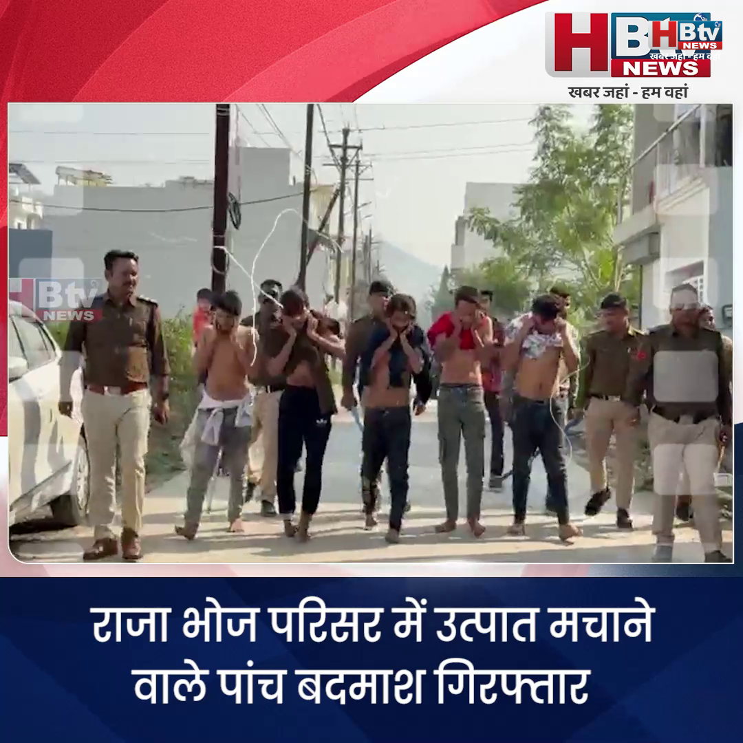 भोपाल…राजा भोज परिसर में उत्पात मचाने वाले पांच बदमाश गिरफ्तार.. पुलिस ने निकाला जुलूस