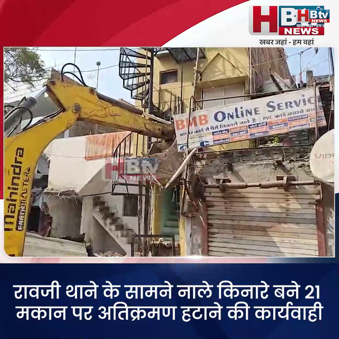 INDORE–रावजी थाने के सामने नाले किनारे बने 21 मकान पर अतिक्रमण हटाने की कार्यवाही….