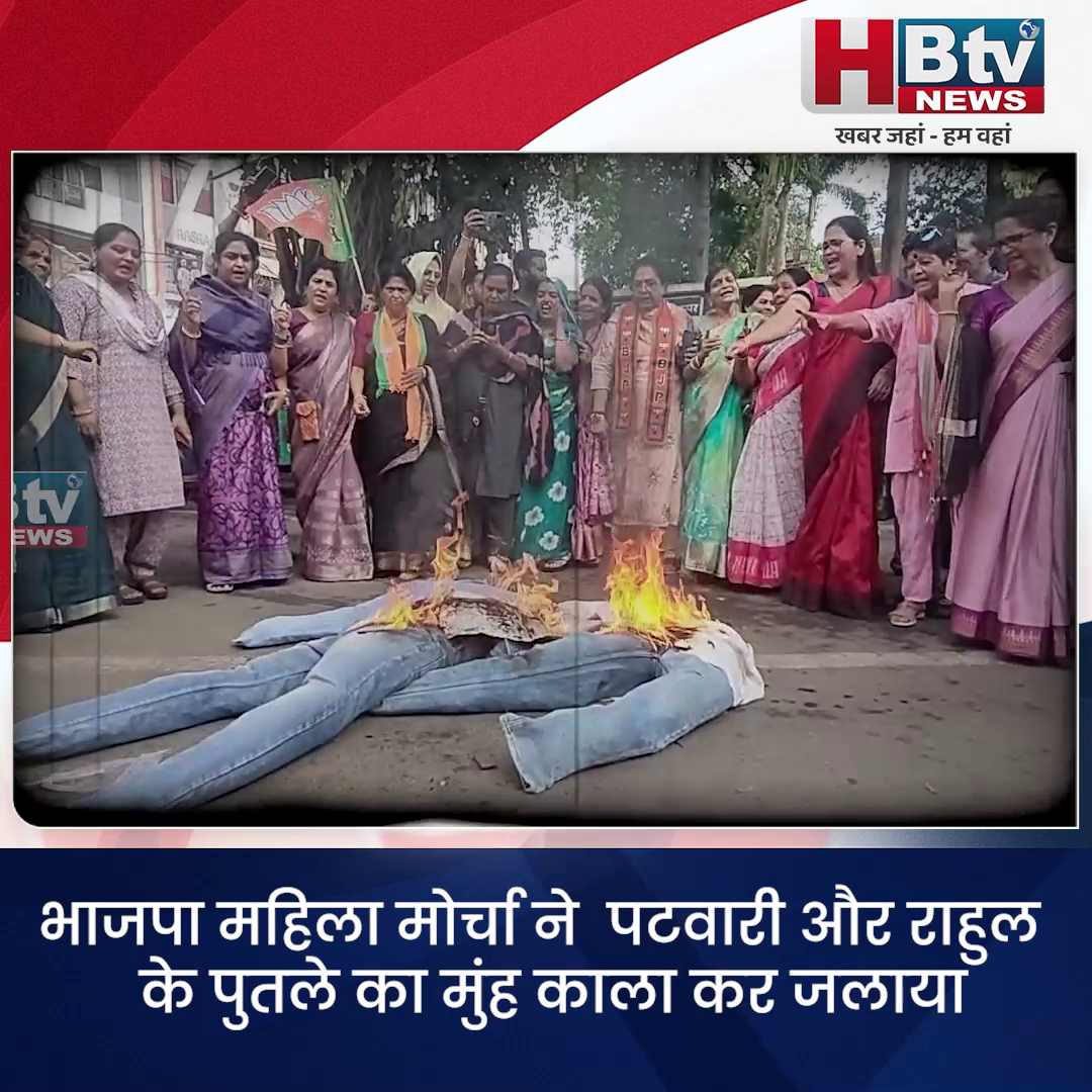 INDORE–भाजपा महिला मोर्चा ने पटवारी और राहुल गांधी के पुतले का मुंह काला कर जलाया….