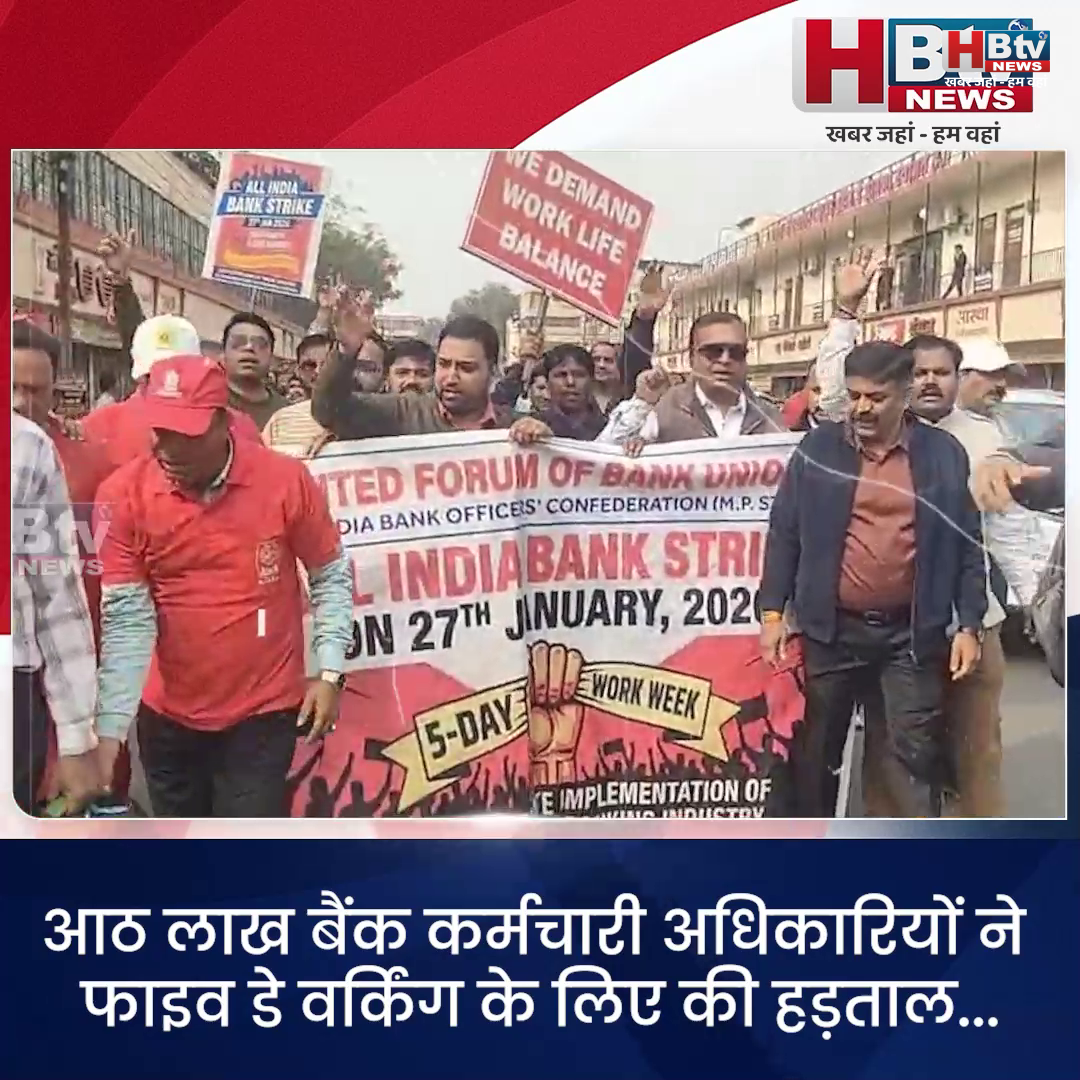 INDORE–आठ लाख बैंक कर्मचारी अधिकारियों ने फाइव डे वर्किंग के लिए की हड़ताल…