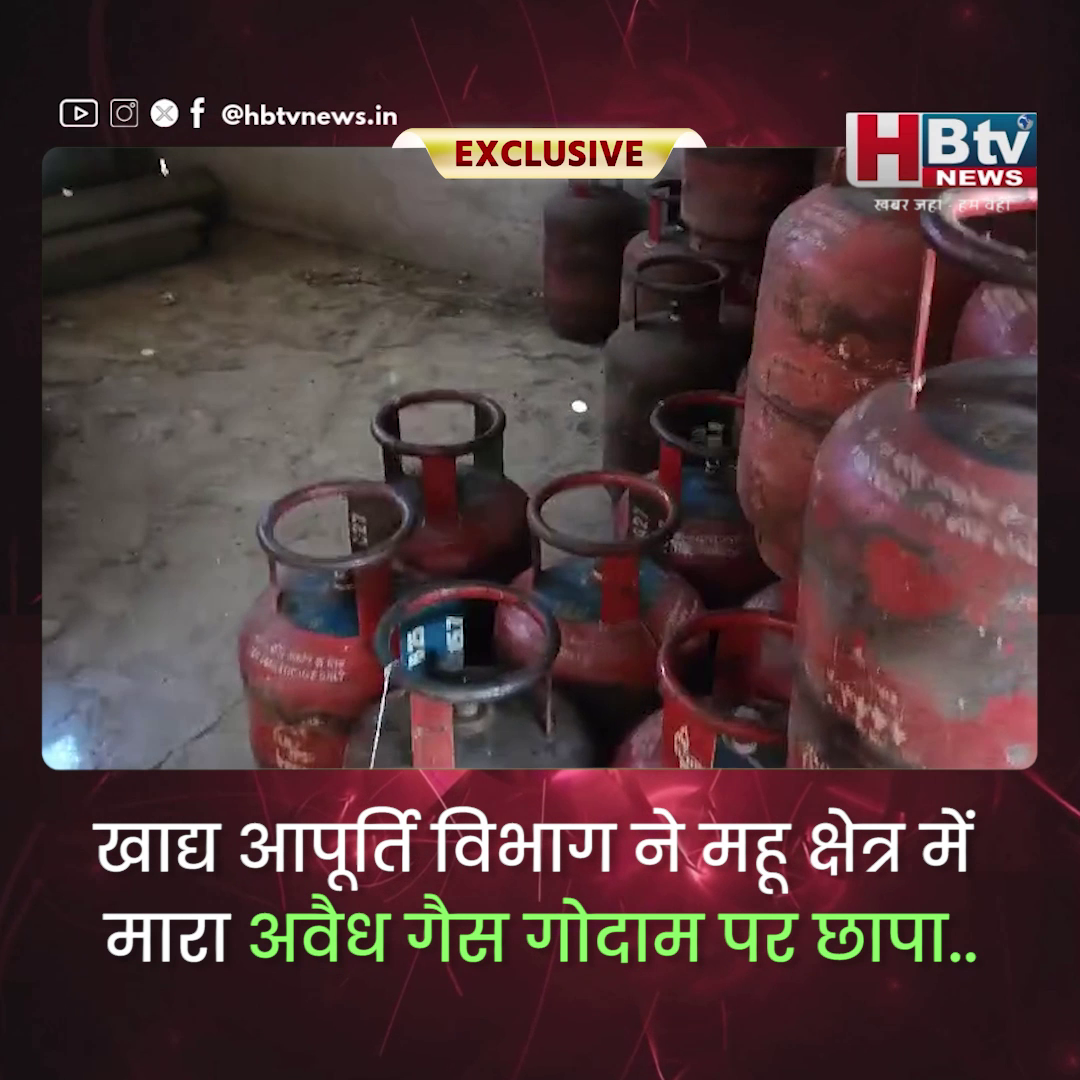 INDORE–खाद्य आपूर्ति विभाग ने महू क्षेत्र में मारा अवैध गैस गोदाम पर छापा..