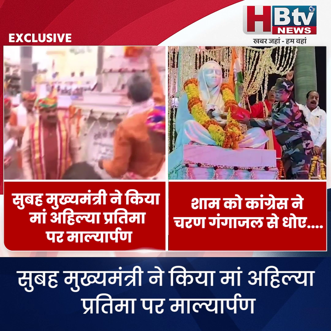 INDORE – सुबह मुख्यमंत्री ने किया मां अहिल्या प्रतिमा पर माल्यार्पण, शाम को कांग्रेस ने चरण गंगाजल से धोए….