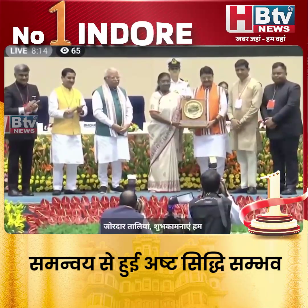 INDORE–स्वच्छता सुपर लीग में भी इंदौर की अष्ट सिद्धि,राष्ट्रपति द्रौपदी मुर्मू के हाथों सम्मान….