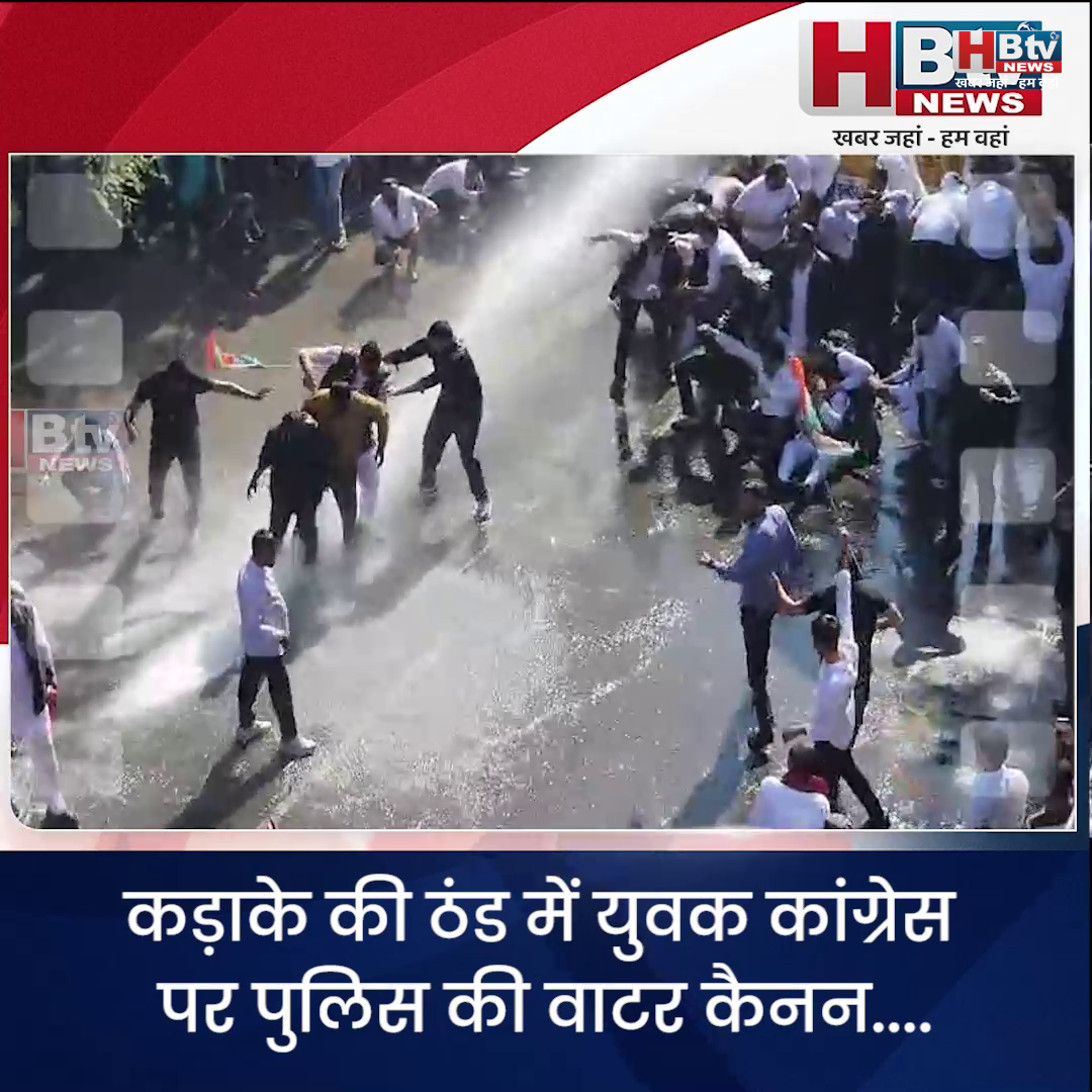 INDORE–कड़ाके की ठंड में युवक कांग्रेस पर पुलिस ने किया वाटर कैनन का उपयोग…