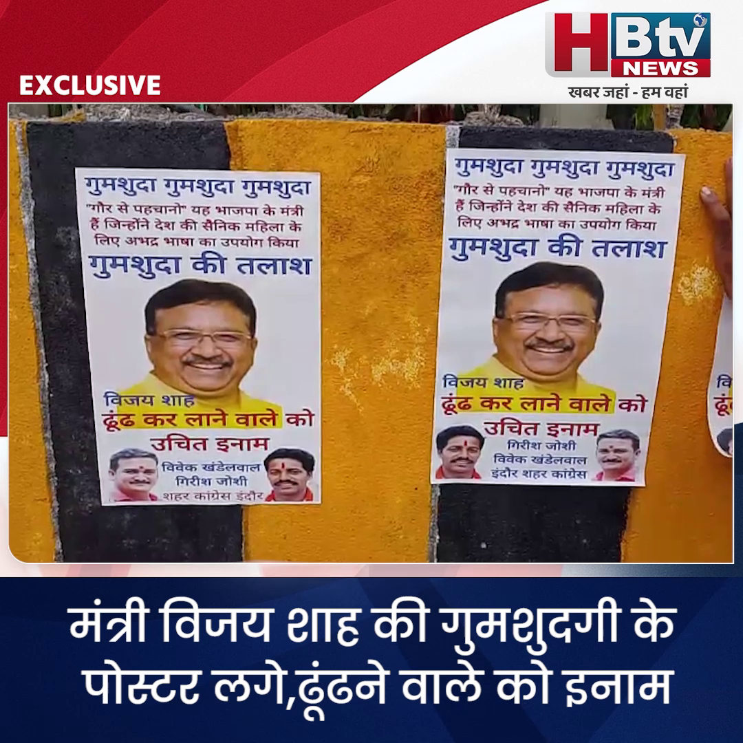 INDORE–मंत्री विजय शाह की गुमशुदगी के पोस्टर लगे,ढूंढने वाले को इनाम….