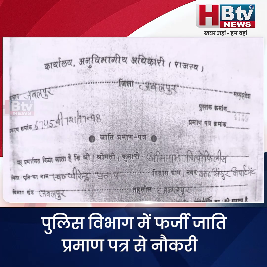 जबलपुर…पुलिस विभाग में फर्जी जाति प्रमाण पत्र से नौकरी