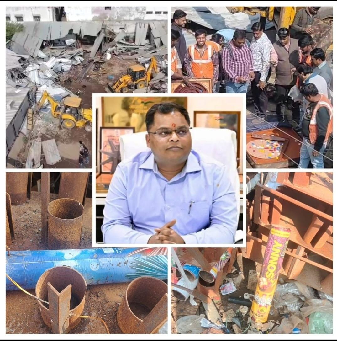 अवैध पटाखा गोदामों पर कलेक्टर शिवम वर्मा का कड़ा एक्शन, 20 टीन शेड ढहाए, पुलिस और नगर निगम पर उठ रहे हैं सवाल.