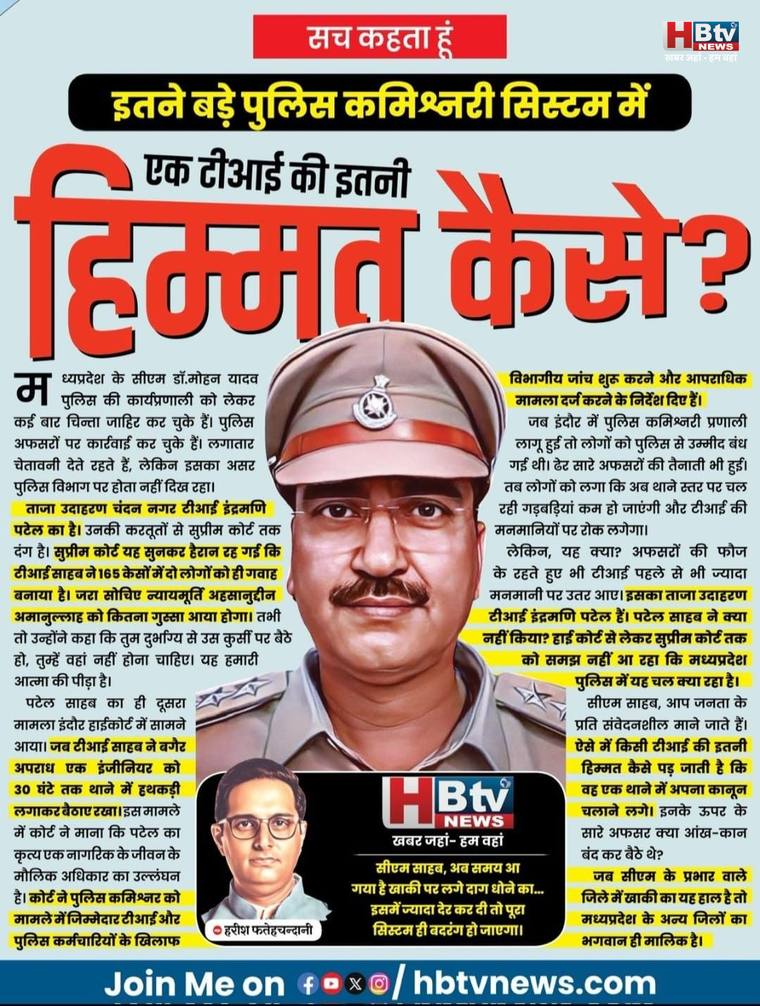 लेकिन, यह क्या? अफसरों की फौज के रहते हुए भी टीआई पहले से भी ज्यादा मनमानी पर उतर आए। इसका ताजा उदाहरण टीआई इंद्रमणि पटेल हैं। पटेल साहब ने क्या नहीं किया? हाई कोर्ट से लेकर सुप्रीम कोर्ट तक को समझ नहीं आ रहा कि मध्यप्रदेश पुलिस में यह चल क्या रहा है।
