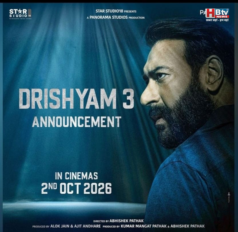 मुंबई। बॉलीवुड के दिग्गज एक्टर अजय देवगन ने अपनी फिल्म दृश्यम 3 की रिलीज डेट अनाउंस कर दी है। देवगन ने एक वीडियो शेयर करते हुए लिखा- दृश्यम 3, दृश्यम डे पर रिलीज होगी। आखिरी हिस्सा बाकी है. सिनेमा में फिल्म को 2 अक्टूबर 2026 को देख सकते हैं। इस फिल्म में एक बार फिर अपनी फैमिली को बचाने के लिए हर कोशिश करते नजर आएंगे।