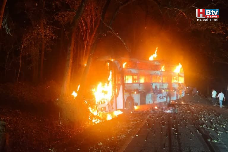 बड़ा हादसा टला: कर्नाटक में चलती बस में लगी भीषण आग, ड्राइवर की सूझबूझ से 36 यात्रियों की जान बची .